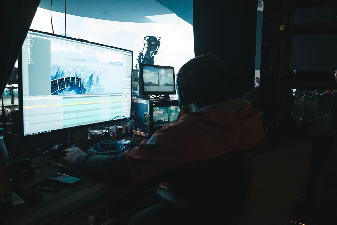 Beyond that, we acted as supervisors on the physical set. We consulted on the selection and scaling of physical props and special effects to ensure a perfect symbiosis between the real floor construction and the virtual horizon line. Our responsibilities also included optimizing the shooting schedule and scene timing to fully exploit the potential of real-time technology under live conditions.